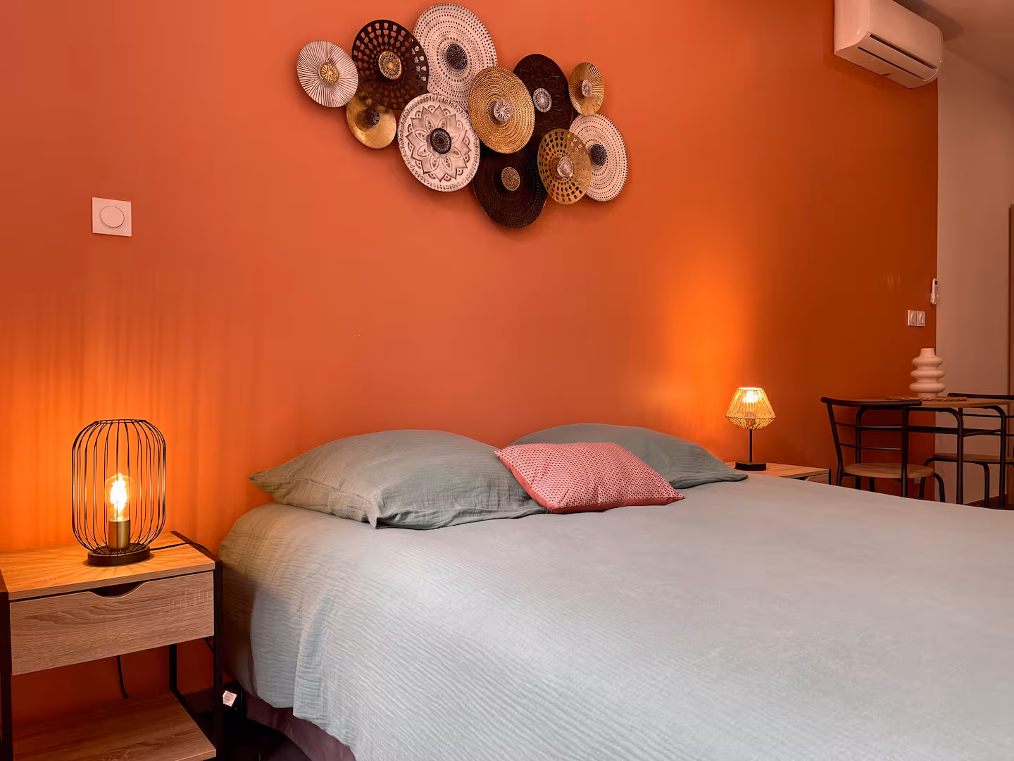Ce studio climatisé à Carcassonne accueille jusqu’à 2 voyageurs dans un cadre moderne et pratique. Le logement dispose d’un lit double, d’une salle d’eau avec WC et d’une cuisine équipée pour préparer vos repas (plaques, vaisselle, condiments de base, casseroles). Vous bénéficierez d’espaces communs agréables : rooftop avec vue imprenable sur la Cité Médiévale, patio avec machine à café Tassimo et hall d’entrée avec bagagerie et lave-linge. L’arrivée est simple grâce à une boîte à clés sécurisée, permettant une autonomie totale. Un hébergement idéal pour visiter Carcassonne et ses sites emblématiques à pied.